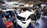 Pengunjung mengamati mobil-mobil pada hari terakhir pameran otomotif GIIAS 2025 di Indonesia Convention Exhibition (ICE) BSD, Serpong, Kabupaten Tangerang, Banten, Ahad (3/8/2025). GAIKINDO mencatat selama pelaksanaan pameran GIIAS 2025 jumlah pengunjung mengalami kenaikan sebesar tujuh persen dibanding GIIAS 2024, sementara nilai transaksi termasuk pembelian mobil baru turun akibat tekanan ekonomi. (FOTO : ANTARA FOTO/Muhammad Iqbal)