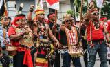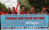 REPUBLIKA.CO.ID, PALANGKA RAYA -- Sejumlah pengunjuk rasa dari Aliansi Dayak Bersatu menggelar aksi demo menolak dan menghentikan program transmigrasi di depan kantor Gubernur Kalimantan Tengah, Palangka Raya, Senin (4/8/2025).