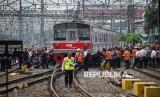 REPUBLIKA.CO.ID, JAKARTA -- KRL Commuter Line nomor 1189 relasi Bogor-Jakarta Kota anjlok di emplasemen Stasiun Jakarta Kota, Selasa (5/8/2025).