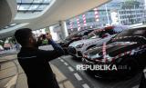 Jurnalis mengambil gambar kendaraan mobil sitaan Kejaksaan Agung RI diparkir di depan Gedung Jampidsus, Kejaksaan Agung RI, Jakarta, Selasa (5/7/2025). Kejaksaan Agung RI menyita lima unit mobil mewah yang diduga milik tersangka kasus dugaan korupsi tata kelola minyak mentah Riza Chalid. Kelima mobil tersebut terdiri dari satu unit Toyota Alphard, Mini Cooper, dan tiga unit Mercedes-Benz. (FOTO : Republika/Thoudy Badai)