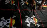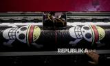 REPUBLIKA.CO.ID, KARANGANYAR -- Pekerja memotong bendera bergambar anime One Piece di salah satu usaha konveksi Karanganyar, Jawa Tengah, Selasa (5/8/2025).