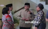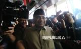 Mantan Menteri Agama Yaqut Cholil Qoumas usai memenuhi panggilan KPK di Gedung Merah Putih KPK, Jakarta, Kamis (7/8/2025). Yaqut Cholil Qoumas dimintai keterangan selama sekitar lima jam terkait penyelidikan kasus dugaan korupsi kuota haji khusus 2024. (FOTO : Republika/Prayogi)