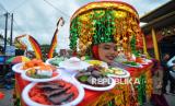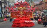 REPUBLIKA.CO.ID, PADANG -- Seorang siswi mengikuti karnaval kota tua di Jl Klenteng, Padang, Sumatera Barat, Kamis (7/8/2025).