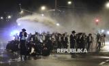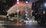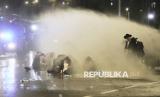 Polisi menggunakan meriam air untuk membubarkan warga Yahudi ultra-Ortodoks yang memblokir jalan saat aksi demonstrasi menentang kebijakan wajib militer di Yerusalem, Kamis (7/8/2025). Aksi demonstrasi terjadi menyusul penangkapan dua pemuda yahudi ultra Ortodoks yang menolak kebijakan wajib militer. (FOTO : AP Photo/Mahmoud Illean)