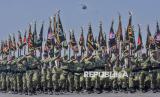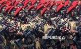 REPUBLIKA.CO.ID, BANDUNG BARAT -- Prajurit TNI melakukan defile usai Upacara Gelar Pasukan Operasional dan Kehormatan Militer di Lapangan Udara (Lanud) Suparlan Pusdiklatpassus, Batujajar, Kabupaten Bandung Barat, Jawa Barat, Ahad (10/8/2025).