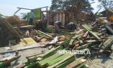 REPUBLIKA.CO.ID, SUBANG -- Pemilik kios membongkar sendiri Kiosnya di Perbatasan Subang dan Kabupaten Bandung Barat (KBB), dalam rangka penertiban bangunan liar di sepanjang Jalan Provinsi Jabar dari Kabupaten Subang menuju KBB, Ahad (10/8/2025).