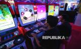 Pengunjung bermain game di salah satu stan Indonesia Game Week (IGW) 2025 di Blok M Hub, Jakarta, Ahad (10/8/2025). IGW 2025 menampilkan lebih dari 20 Intellectual Property (IP) yang mencakup gim lokal, komik, desain karakter, konten kreatif, hingga waralaba gim ternama dunia. (FOTO : Republika/Prayogi)
