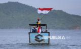Komunitas Mancing Aceh membawa bendera saat menuju Pulau Tuan, di desa Lamteungoh, kecamatan Peukan Bada, kabupaten Aceh Besar, Aceh, Ahad (10/8/2025). Pengibaran bendera di Pulau Tuan yang memiliki keindahan terumbu karang dan berbagai jenis ikan hias tersebut dalam rangka menyambut HUT ke-80 Kemerdekaan Republik Indonesia. (FOTO : ANTARA FOTO/Ampelsa)