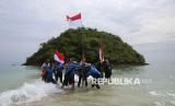 REPUBLIKA.CO.ID, ACEH -- Komunitas Mancing Aceh menggelar pengibaran bendera di perairan Pulau Tuan, desa Lamteungoh, kecamatan Peukan Bada, Aceh Besar, Aceh, Ahad (10/8/2025).