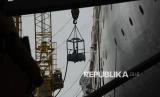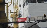 Petugas pemadam kebakaran berusaha memadamkan api di Kapal Mesin (KM) Dorolonda di Dock Koja Bahari Pelabuhan Tanjung Priok, Jakarta, Senin (11/8/2025). Kapal Dorolonda milik PT Pelayaran Nasional Indonesia (PT Pelni) terbakar sekitar pukul 11.00 WIB saat dalam perawatan rutin dan tidak membawa penumpang serta tidak ada korban. Hingga saat ini penyebab kebakaran kapal masih diselediki pihak berwajib. (FOTO : Republika/Thoudy Badai)