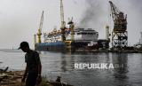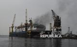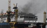 Kepulan asap di dalam Kapal Mesin (KM) Dorolonda yang terbakar di Dock Koja Bahari Pelabuhan Tanjung Priok, Jakarta, Senin (11/8/2025). Kapal Dorolonda milik PT Pelayaran Nasional Indonesia (PT Pelni) terbakar sekitar pukul 11.00 WIB saat dalam perawatan rutin dan tidak membawa penumpang serta tidak ada korban. Hingga saat ini penyebab kebakaran kapal masih diselediki pihak berwajib. (FOTO : Republika/Thoudy Badai)