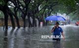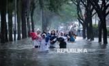 REPUBLIKA.CO.ID, TANGERANG -- Pelajar melintasi banjir akibat hujan deras di Perumahan Magnolia Residence, Kota Tangerang, Banten, Selasa (12/8/2025).