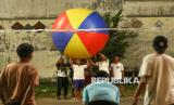 REPUBLIKA.CO.ID, BANYUWANGI -- Warga melemparkan bola raksasa ke area lawan pada perlombaan Agustusan di Banyuwangi, Jawa Timur, Selasa (12/8/2025).