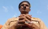Petugas upacara yang berasal dari Pramuka berkebutuhan khusus berdoa saat mengikuti gladi bersih Upacara Peringatan Hari Pramuka ke-64 Tahun 2025 dan Pembukaan Perkemahan Pramuka Berkebutuhan Khusus (PPBK) Tingkat Nasional Tahun 2025 di Lapangan Utama Bumi Perkemahan, Cibubur, Jakarta, Rabu (13/8/2025). (FOTO : Republika/Prayogi)