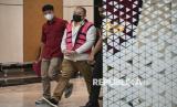 Tersangka kasus dugaan tindak pidana korupsi PT Sritex Iwan Kurniawan Lukminto (tengah) berjalan menuju mobil tahanan usai ditetapkan sebagai tersangka di Kejaksaan Agung, Jakarta, Rabu (13/8/2025). Kejaksaan Agung resmi menetapkan Wakil Direktur Utama PT Sritex periode 2012–2023 Iwan Kurniawan Lukminto sebagai tersangka dalam kasus dugaan korupsi pemberian kredit PT Bank BJB, PT Bank DKI, dan PT Bank Jateng kepada PT Sritex dan entitas anak usaha. (FOTO : ANTARA FOTO/Muhammad Adimaja)