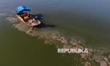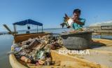 REPUBLIKA.CO.ID, KENDARI -- Petugas kebersihan DLHK Kendari membersihkan sampah laut di Teluk Kendari, Sulawesi Tenggara, Kamis (14/8/2025).