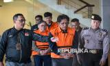 REPUBLIKA.CO.ID, JAKARTA -- Tersangka kasus dugaan suap izin pemanfaatan kawasan hutan Direktur Utama PT Inhutani V Dicky Yuanda Rady, staf perizinan PT Sungai Budi Grup Aditya, dan Direktur Utama PT Paramita Mulia Langgeng Djunaidi berjalan menuju ruang konferensi pers di Gedung Merah Putih KPK, Jakarta, Kamis (14/8/2025).