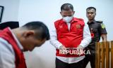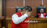 REPUBLIKA.CO.ID, SERANG -- Terdakwa pemilik pabrik narkoba Beny Setiawan mengikuti sidang pembacaan putusan di Pengadilan Negeri Serang Kelas 1A, Kota Serang, Banten, Kamis (14/8/2025).