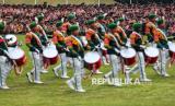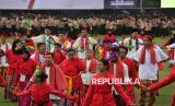 Penari yang merupakan anggota Pramuka berkebutuhan khusus turut mengisi acara dalam Upacara Peringatan Hari Pramuka ke-64 Tahun 2025 dan Pembukaan Perkemahan Pramuka Berkebutuhan Khusus (PPBK) Tingkat Nasional Tahun 2025 di Lapangan Utama Bumi Perkemahan, Cibubur, Jakarta, Kamis (14/8/2025). Upacara Peringatan Hari Pramuka ke-64 Tahun 2025, yang dirangkaikan dengan Pembukaan Perkemahan Pramuka Berkebutuhan Khusus (PPBK) Tingkat Nasional Tahun 2025 tersebut mengusung tema Kolaborasi untuk Membangun Ketahanan Bangsa. (FOTO : Republika/Prayogi)