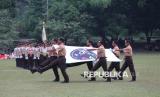 Petugas upacara yang berasal dari Pramuka berkebutuhan khusus mengikuti Upacara Peringatan Hari Pramuka ke-64 Tahun 2025 dan Pembukaan Perkemahan Pramuka Berkebutuhan Khusus (PPBK) Tingkat Nasional Tahun 2025 di Lapangan Utama Bumi Perkemahan, Cibubur, Jakarta, Kamis (14/8/2025). Upacara Peringatan Hari Pramuka ke-64 Tahun 2025, yang dirangkaikan dengan Pembukaan Perkemahan Pramuka Berkebutuhan Khusus (PPBK) Tingkat Nasional Tahun 2025 tersebut mengusung tema Kolaborasi untuk Membangun Ketahanan Bangsa. (FOTO : Republika/Prayogi)