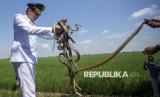Pemkab Indramayu melepas liar 200 ekor ular tikus, burung hantu dan biawak sebagai pengendali populasi hama tikus yang merusak tanaman padi.