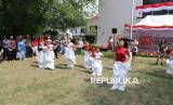 Sejumlah anak-anak melakukan pentas tari saat Pesta Rakyat Hari Ulang Tahun ke-80 Kemerdekaan Republik Indonesia yang digelar di Wisma Indonesia, Warsawa, Polandia, Ahad (17/8/2025) waktu setempat. Selain upacara, KBRI Warsawa juga menggelar Pesta Rakyat yang menampilkan pertunjukan pencak silat, tarian anak Indonesia, peragaan busana tradisional, bazaar kuliner nusantara, serta perlombaan khas 17 Agustus-an. (FOTO : Dok KBRI Warsawa)
