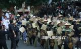 Ribuan peserta mengikuti kirab budaya atau karnaval Jabar Hudang dalam rangka perayaan HUT Provinsi Jawa Barat (Jabar) ke-80, di Kota Bandung, Selasa (19/8). Karnaval yang diikuti seluruh kota dan kabupaten di Jabar ini mengangkat spirit kebangkitan hasil pertanian, industri dan UMKM lokal. (FOTO : Edi Yusuf)