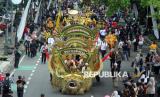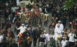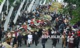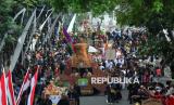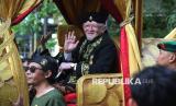 Raja Sumedang HRI Lukman Soemadisoeria ikut serta saat kirab budaya atau karnaval Jabar Hudang dalam rangka perayaan HUT Provinsi Jawa Barat (Jabar) ke-80, di Kota Bandung, Selasa (19/8). Karnaval yang diikuti seluruh kota dan kabupaten di Jabar ini mengangkat spirit kebangkitan hasil pertanian, industri dan UMKM lokal. (FOTO : Edi Yusuf)