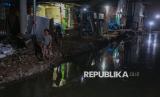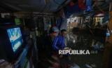Warga beraktivitas di permukiman yang terendam banjir rob di kawasan Kali Adem, Muara Angke, Jakarta Utara, Selasa (19/8/2025). Banjir rob setinggi sekitar 20-50 centimeter tersebut menggenangi permukiman saat permukaan air laut naik setiap sekitar pukul 17.00 WIB dan kembali surut diatas pukul 00.00 WIB. (FOTO : Republika/Thoudy Badai)