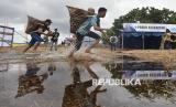 REPUBLIKA.CO.ID, JAMBI -- Warga beradu cepat saat mengikuti lomba majujung atau membawa beban di atas kepala di Air Hitam Laut, Tanjung Jabung Timur, Jambi, Selasa (19/8/2025).