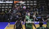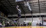 REPUBLIKA.CO.ID, JAKARTA -- Pebasket tim Harlem Globetrotters Moose Weekes melakukan slam dunk saat tampil pada Harlem Globetrotters World Tour 2025 di Hall Basket Gelora Bung Karno, Jakarta, Rabu (20/8/2025).