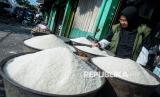 REPUBLIKA.CO.ID, TANGERANG -- Petugas memeriksa kualitas beras medium saat inspeksi mendadak (sidak) di Pasar Gerendeng, Kota Tangerang, Banten, Jumat (22/8/2025).