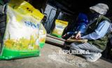 Petugas menimbang beras SPHP saat inspeksi mendadak (sidak) di Pasar Gerendeng, Kota Tangerang, Banten, Jumat (22/8/2025). Sidak oleh Badan Pangan Nasional, Satgas Pangan Polri dan Dinas Ketahanan Pangan Kota Tangerang tersebut untuk memantau harga, kualitas beras dan memastikan tidak ada beras oplosan yang dijual oleh pedagang. (FOTO : ANTARA FOTO/Putra M. Akbar)