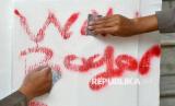 REPUBLIKA.CO.ID, BOGOR -- Anggota Polresta Bogor Kota membersihkan coretan pada dinding gedung Balaikota Bogor, Jawa Barat, Jumat (22/8/2025).