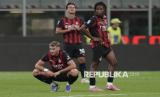 Ekspresi pemain AC Milan seusai kalah dari Cremonese di laga pertama Seri-A Liga Itali di Stadion San Siro, Milan, Ahad (24/8/2025). Milan takluk dari Cremonese dengan skor 1-2. (FOTO : AP Photo/Luca Bruno)