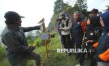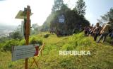 REPUBLIKA.CO.ID, LEMBANG -- Peserta mendapat arahan dan penjelasan dari sejumlah ahli saat Geotrack pengenalan Sesar Lembang, yang digelar BPBD Kota Bandung, di kawasan Gunung Batu, Lembang, Kabupaten Bandung Barat, Ahad (24/8/2024).