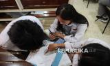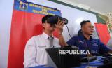 Pelajar mencoba tanda tangan sebelum melakukan perekaman KTP Elektronik (E-KTP) saat adanya layanan jemput bola perekaman KTP elektronik (E-KTP) di SMAN 8 Jakarta, Tebet, Jakarta, Selasa (26/8/2025). (FOTO : Republika/Prayogi)