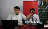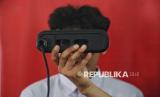 Pelajar melakukan perekaman KTP Elektronik (E-KTP) saat adanya layanan jemput bola perekaman KTP elektronik (E-KTP) di SMAN 8 Jakarta, Tebet, Jakarta, Selasa (26/8/2025). Pelayanan dilakukan langsung oleh petugas, meliputi perekaman data biometrik seperti retina mata. (FOTO : Republika/Prayogi)
