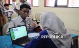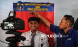 Pelajar melakukan perekaman KTP Elektronik (E-KTP) saat adanya layanan jemput bola perekaman KTP elektronik (E-KTP) di SMAN 8 Jakarta, Tebet, Jakarta, Selasa (26/8/2025). Kegiatan ini merupakan bagian dari program jemput bola yang rutin dilakukan ke berbagai sekolah di Jakarta Selatan. (FOTO : Republika/Prayogi)