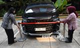 REPUBLIKA.CO.ID, JAKARTA -- Karyawan KPK memasang batas pengaman di mobil Alphard yang disita sebagai barang bukti kasus dugaan pemerasan pengurusan sertifikat K3 di Kementerian Ketenagakerjaan, di Gedung Merah Putih KPK, Jakarta, Selasa (26/8/2025).