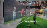 REPUBLIKA.CO.ID, JAKARTA -- Pengunjung mengamati karya foto dari Pewarta Foto Indonesia (PFI) Jakarta dalam pameran fotografi 90 & Beyond: Dua Tahun Transformasi Timnas Indonesia di Sarinah Thamrin, Menteng, Jakarta Pusat, Selasa (26/8/2025).