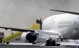REPUBLIKA.CO.ID, SIDOARJO -- Tim ARFF (Airport Rescue and Fire Fighting) berusaha memadamkan api yang membakar pesawat pada simulasi penanggulangan keadaan darurat di Bandara Internasional Juanda, Sidoarjo, Jawa Timur, Rabu (27/8/2025).