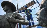 REPUBLIKA.CO.ID, JAKARTA -- Pekerja melakukan persiapan perawatan atau konservasi Patung Pahlawan atau yang dikenal dengan Tugu Tani di Menteng, Jakarta, Rabu (27/8/2025).