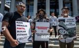 REPUBLIKA.CO.ID, JAKARTA -- Sejumlah jurnalis yang tergabung dalam Ikatan Wartawan Hukum (Iwakum) melakukan aksi solidaritas wartawan di Gedung MK, Jakarta, Rabu (27/8/2025).