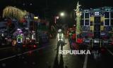 Polisi memeriksa truk pengangkut sound horeg yang diamankan di Mapolres Blitar Kota, Kota Blitar, Jawa Timur, Kamis (28/8/2025). Polres Blitar Kota menahan dan menilang 15 truk pengangkut sound horeg berkapasitas besar serta melakukan pemeriksaan terhadap sejumlah orang yang merupakan panitia penyelenggara pawai akibat tidak mengantongi ijin serta melanggar ketentuan. (FOTO : ANTARA FOTO/Irfan Anshori)