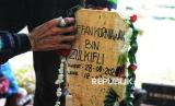 Para kerabat berdoa di makam Affan Kurniawan (21) di TPU Karet Bivak, Jakarta, Jumat (29/8/2025). Affan Kurniawan yang merupakan driver ojek online tersebut meninggal dunia setelah dilindas mobil kendaraan taktis (Rantis) Brimob saat terjadinya bentrok dengan polisi di kawasan Pejompongan, Jakarta. Pemakaman Affan dikawal dan dihadiri oleh ribuan driver ojol. (FOTO : Republika/Prayogi)