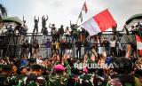 Pengunjuk rasa melakukan aksi 29 Agustus 2025 di dalam Kompleks Parlemen Senayan, Jakarta, Jumat (29/8/2025). Aksi tersebut menuntut pengusutan tuntas kasus tewasnya pengemudi ojek online Affan Kurniawan yang ditabrak mobil rantis Brimob. (FOTO : ANTARA FOTO/Rivan Awal Lingga)