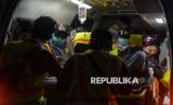 Pengunjuk rasa mendapatkan perawatan dari tim medis saat terjadinya bentrokan antara pengunjuk rasa dengan personel Brimob di depan Markas Komando Brimob Polda Metro Jaya, Kwitang, Jakarta, Jumat (29/8/2025). Aksi tersebut menuntut pengusutan kasus penabrakan pengemudi ojek online oleh mobil rantis Brimob. (FOTO : Republika/Prayogi)