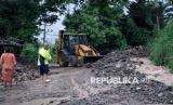 REPUBLIKA.CO.ID, LAMPUNG -- Pekerja menggunakan alat berat memindahkan batu dan lumpur yang menutupi jalan Teluk Ratai penghubung antara Kabupaten Pesawaran dan kota Bandar Lampung, di Lempasing, Teluk Betung Timur, Bandar Lampung, Lampung, Sabtu (30/8/2025).