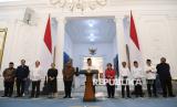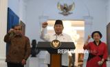 REPUBLIKA.CO.ID, JAKARTA -- Presiden Prabowo Subianto bersama delapan ketua umum partai politik menyampaikan keterangan pers di Istana Merdeka, Jakarta, Ahad (31/8/2025).